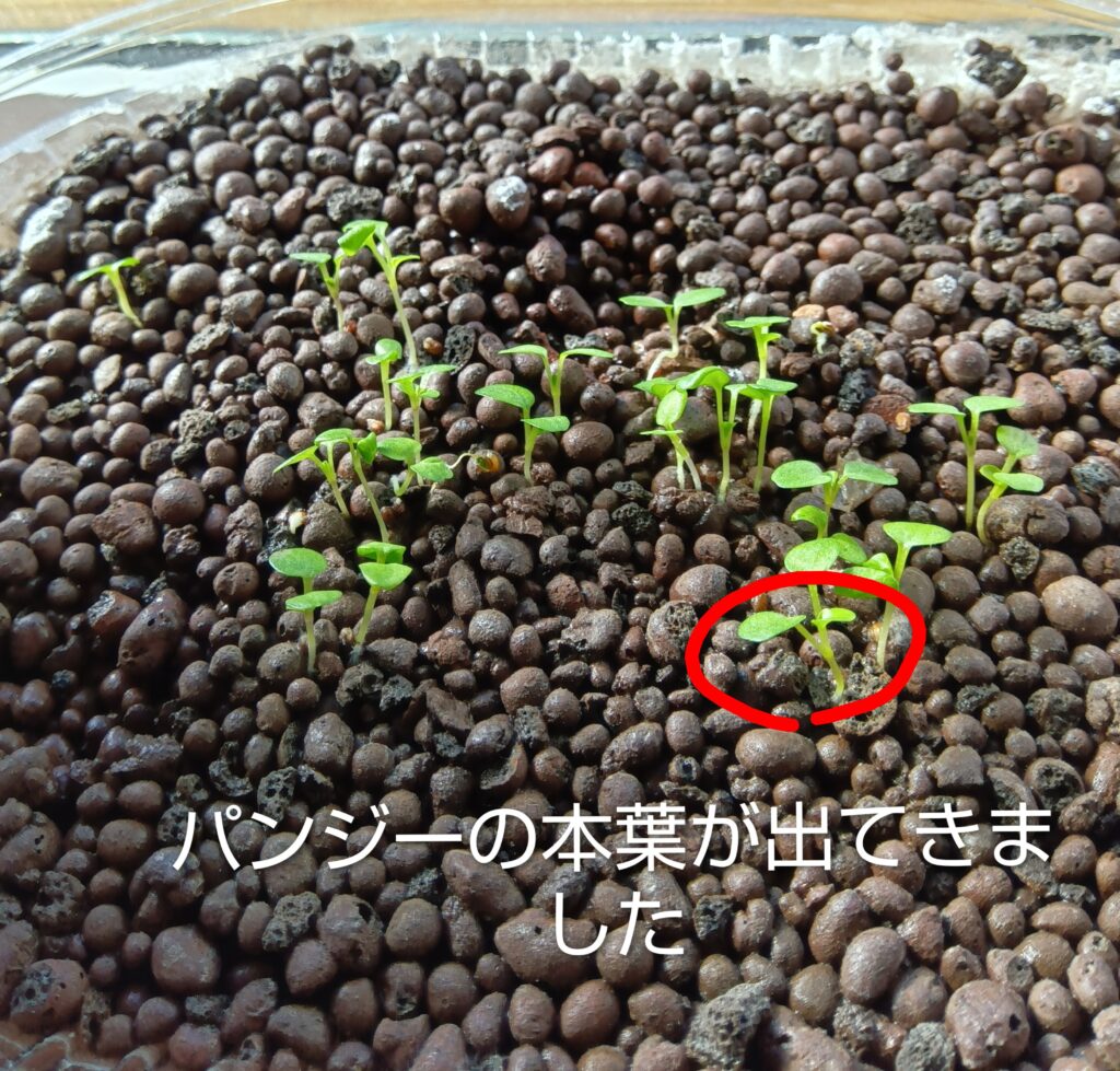 パンジーの小さな本葉が出てきたので、肥料をあげたいと思います。